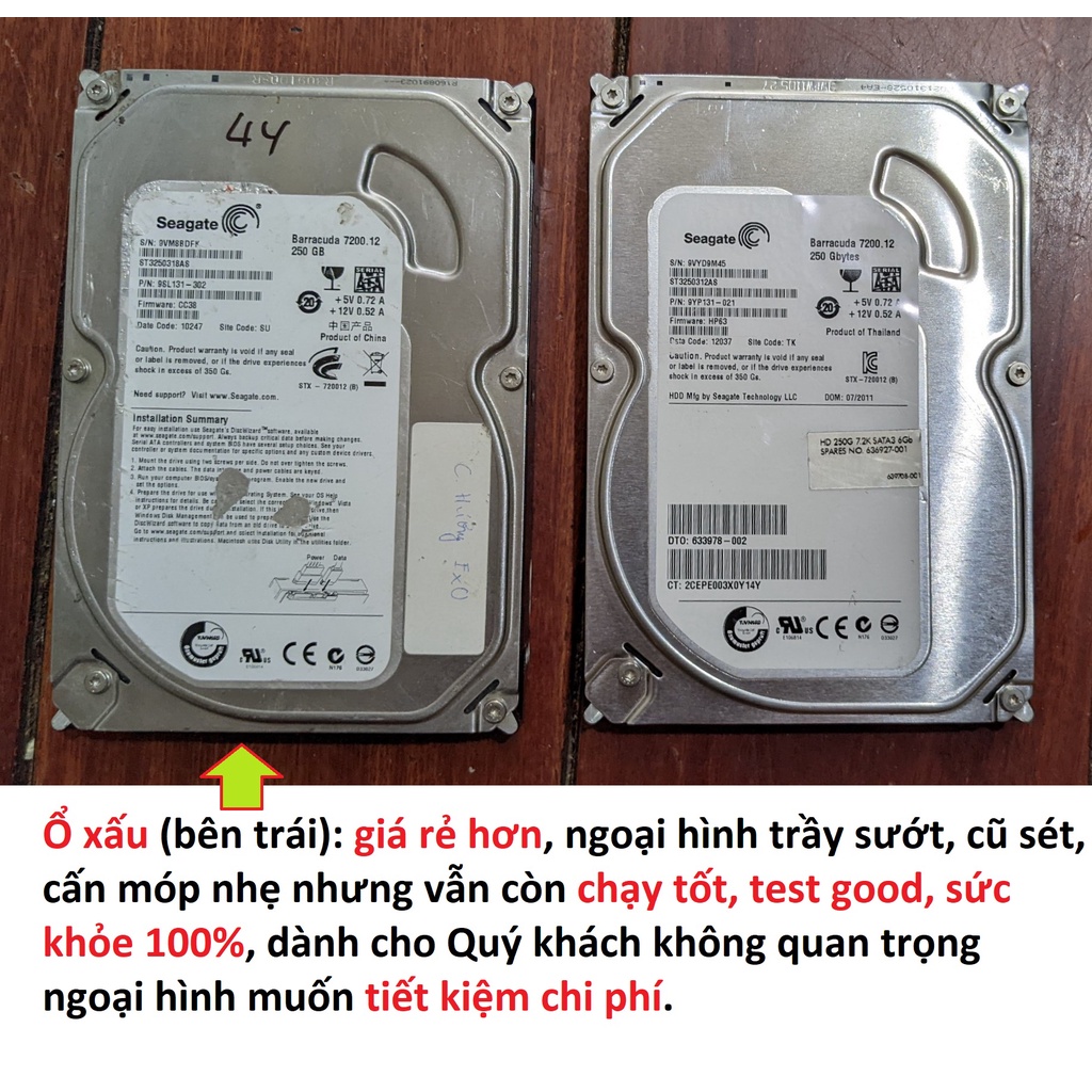 + Tình trạng: Hàng kho Nhật rã máy cũ, ổ cứng còn sử dụng tốt, quay êm. Shop đã kiểm tra kỹ ổ cứng còn tốt 100% không bad bằng tất cả phần mềm (xem trên hình). Ổ xấu (xem trên hình) giá rẻ hơn, ngoại hình trầy sướt, cũ sét nhưng vẫn còn chạy tốt, test good, sức khỏe 100%, dành cho Quý khách không quan trọng ngoại hình, muốn tiết kiệm chi phí.