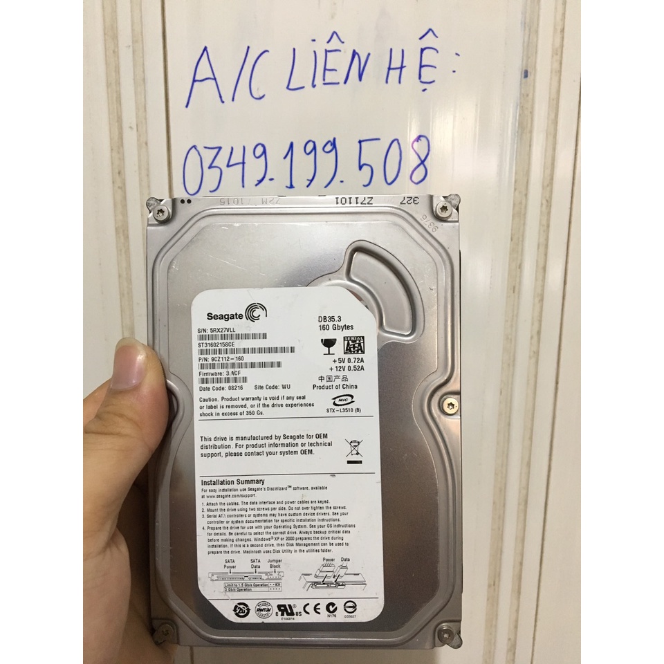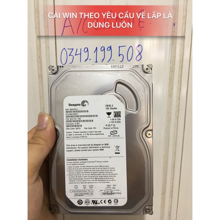 Ổ cứng máy bàn Hdd Pc 160GB Hàng bóc máy bộ zin good+ Các hãng sản xuất : như Western, Samsung, Seagate, Toshiba, Hitachi, Fujitsu, HGST... Shop đã tét phần mềm kỹ thuật rồi ah để yên tâm cho quý khách khi sử dụng. Cam kết sức khỏe good 100%
