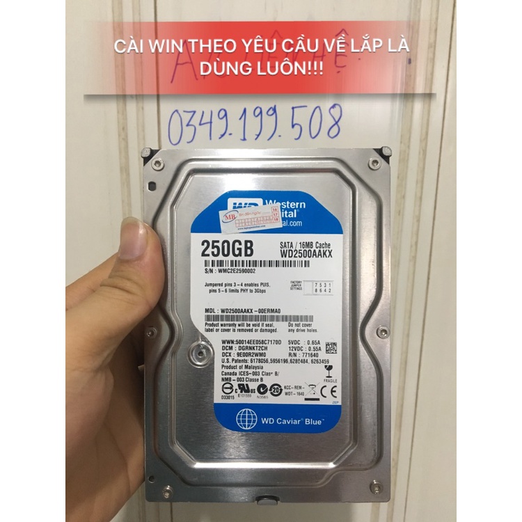 Ổ cứng máy bàn hdd PC 250gb hàng tháo máy good 100% giá rẻ+ Các hãng sản xuất : như Western, Samsung, Seagate, Toshiba, Hitachi, Fujitsu, HGST... Shop đã tét phần mềm kỹ thuật rồi ah để yên tâm cho quý khách khi sử dụng. Cam kết sức khỏe good 100%