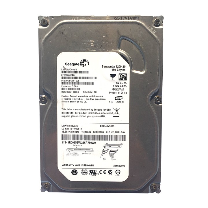 Ổ cứng máy tính Seagate 160GBỔ cứng máy tính Seagate 160GB dùng lắp máy tính bàn, dung lượng ổ cứng 160GB SATA.