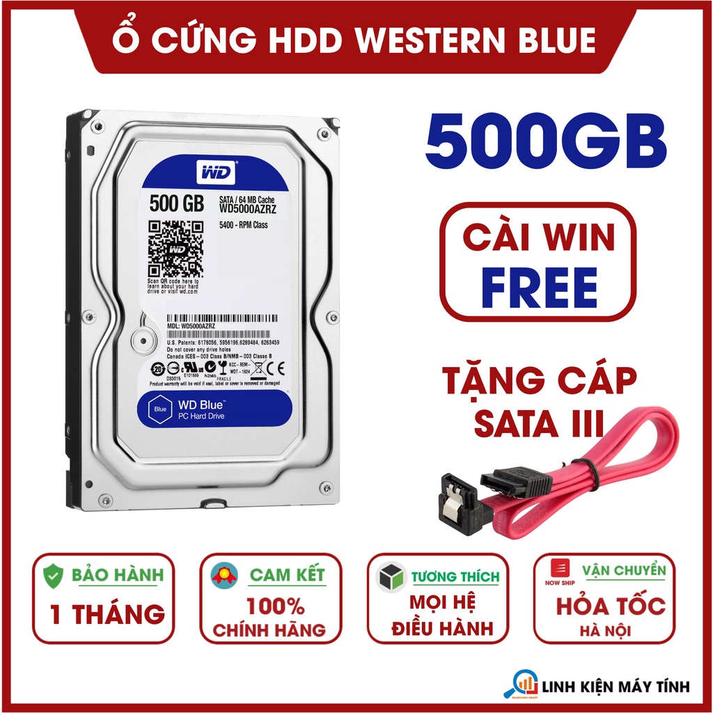 Máy tính & Laptop > Thiết Bị Lưu Trữ > Ổ Cứng Di Động || Ổ cứng PC HDD WD Blue 500GB - Mới 99% - Tặng cáp Sata - Bảo hành 1 thángCòn hàng