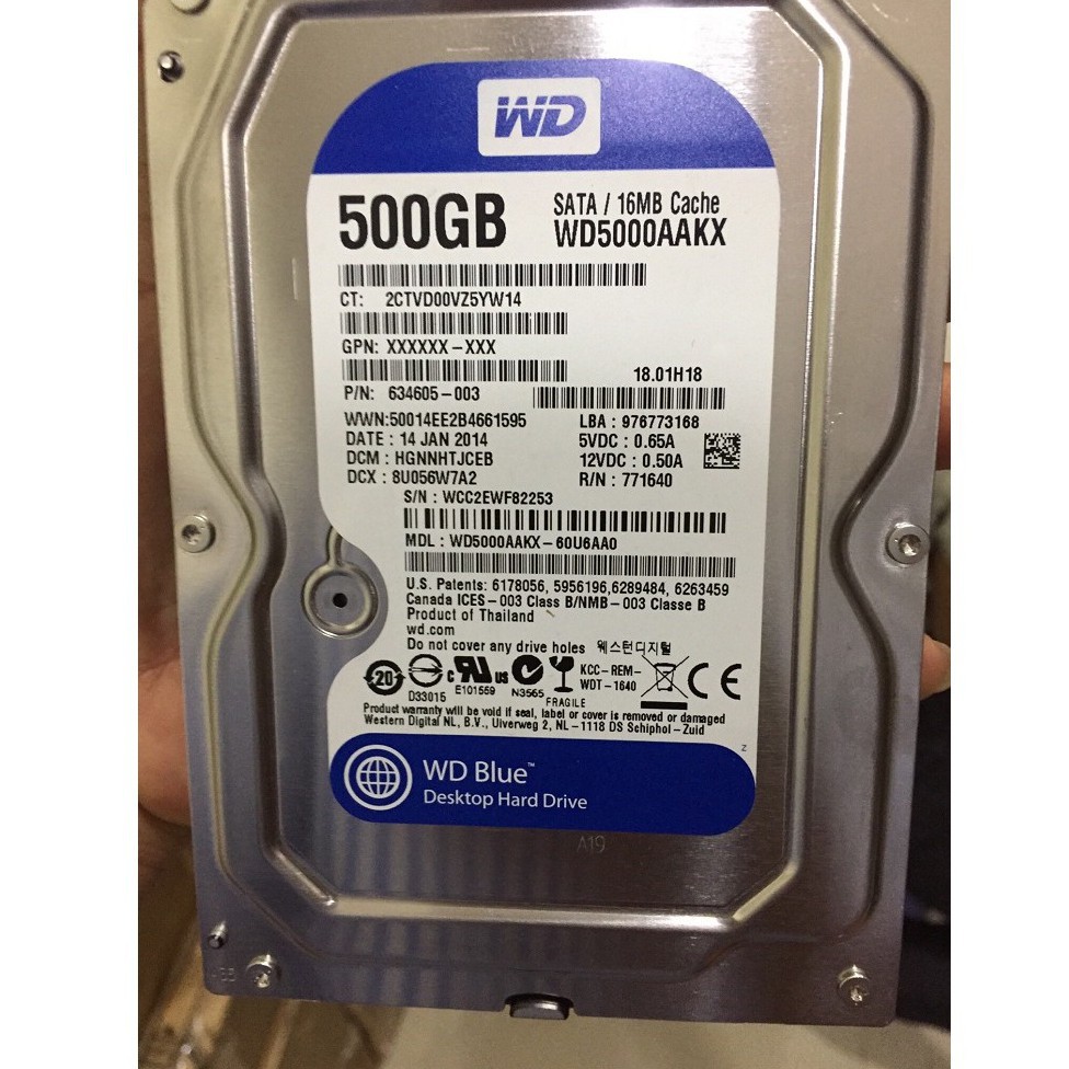 Ổ cứng PC HDD WD Blue 500GB - Mới 99% - Tặng cáp Sata - Bảo hành 1 tháng !!!