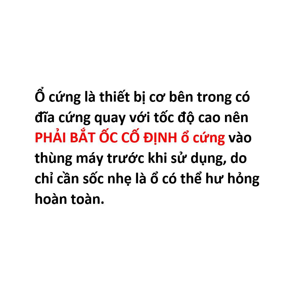 ** Ổ cứng là thiết bị cơ bên trong có đĩa cứng quay với tốc độ cao nên PHẢI BẮT ỐC CỐ ĐỊNH ổ cứng vào thùng máy trước khi sử dụng, do chỉ cần sốc nhẹ là ổ có thể hư hỏng hoàn toàn.