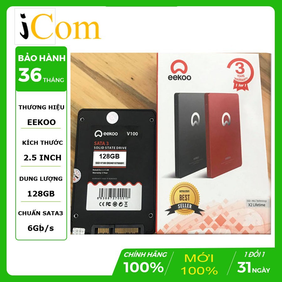 Máy tính & Laptop > Thiết Bị Lưu Trữ > Ổ Cứng SSD || Ổ cứng SSD 128Gb EEKOO Sata III, 6 Gb/s, 2"5 Inch - Màu Đen - Công nghệ 3D MLC NAND - Hàng Chính HãngCòn hàng