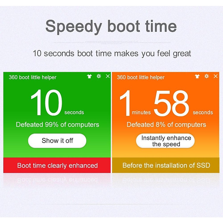 Thời gian khởi động quá nhanh khiến bạn sẽ cảm thấy vô cùng tuyệt vời. Kết quả trước và sau khi sử dụng SSD EEKOO là quá chênh lệch.