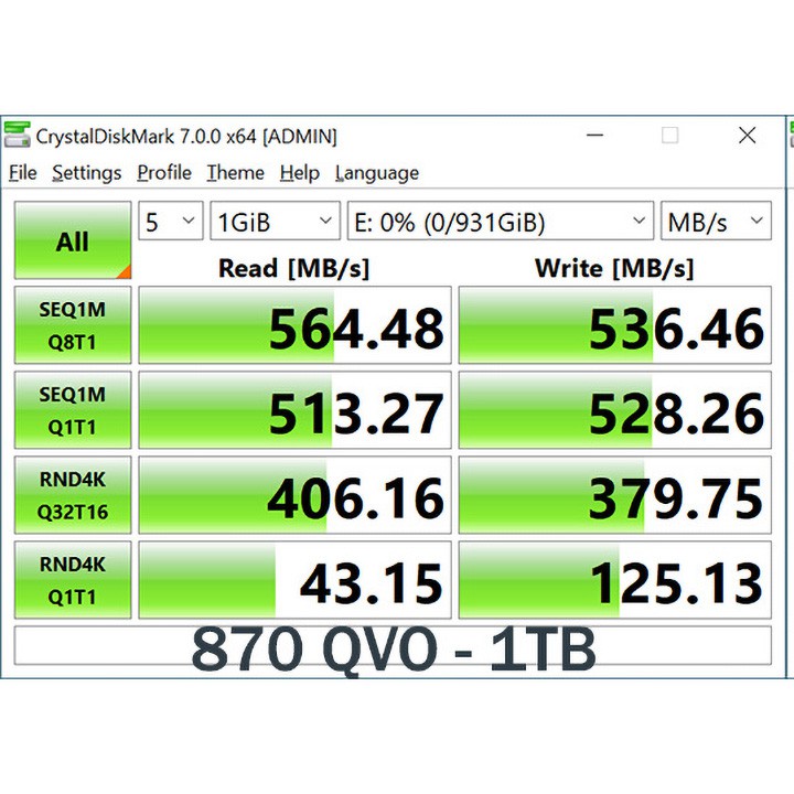 Tốc độ đọc tuần tự tối đa: 560MB/s (gắn cổng SATA3)Tốc độ ghi tuần tự tối đa: 530MB/s (gắn cổng SATA3)