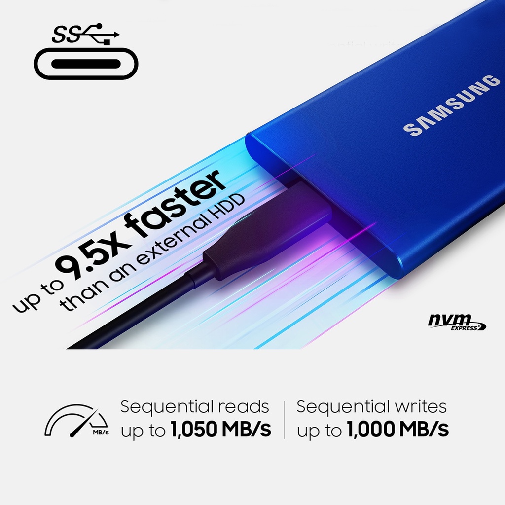 Giới thiệu Ổ cứng SSD di động Samsung Portable T7 500GB - USB 3.2 Gen 2 tốc độ upto 1050MB/s (Xanh dương)
