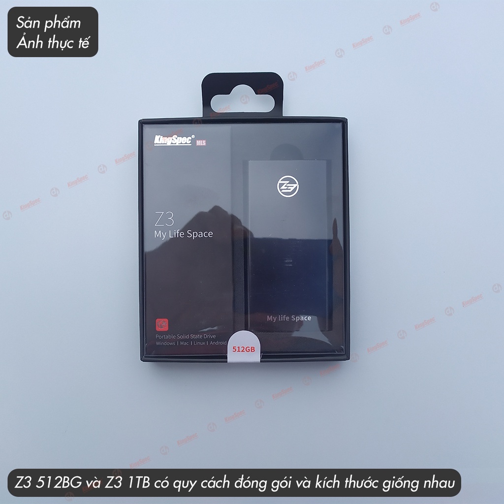 Ổ cứng di động SSD 512GB / 1TB KingSpec , USB 3.1 - TypeC cho PC Laptop | Z3 Series - Hàng Chính Hãng