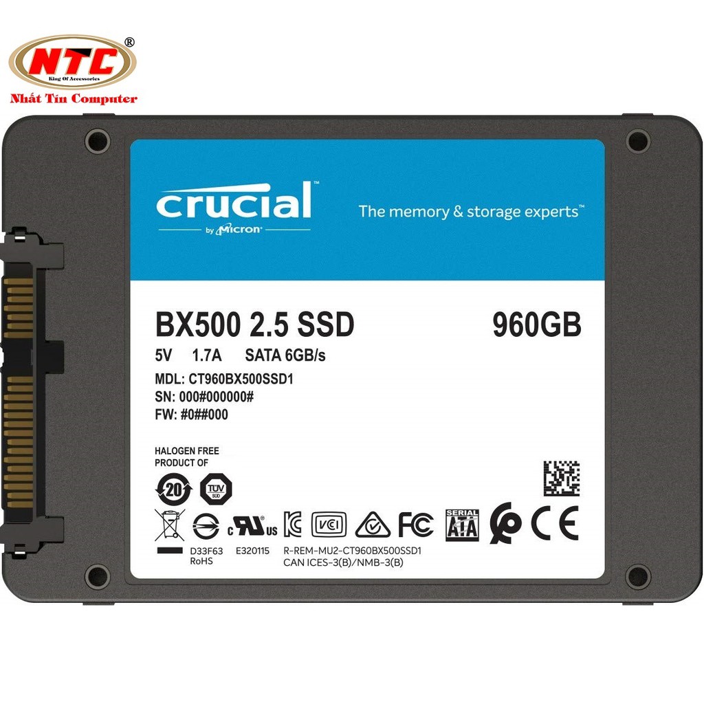 Giới thiệu Ổ cứng SSD gắn trong Crucial BX500 3D NAND SATA III 2.5 inch 960GB R540MB/s W500GB/s