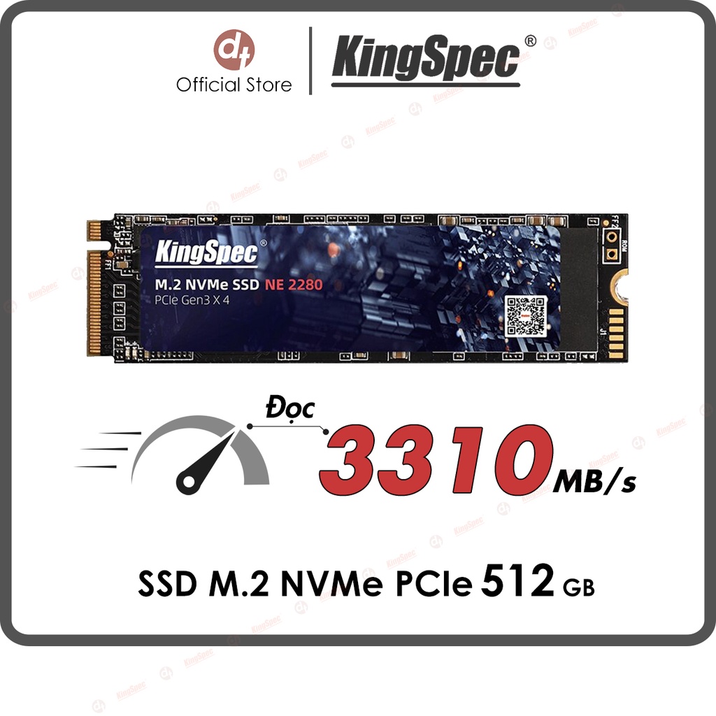 - KingSpec mã sản phẩm NE-512, là ổ cứng SSD gắn trong rành cho Laptop và Máy tính để bản có hỗ trợ khe cắm M2 kích thước 2280 chuẩn PCIe NVMe, là SSD Siêu Nhanh, có tốc độ đọc / ghi tuần tự lên tới, lần lượt là: Đọc 3500Mb/s, Ghi 3000Mb/s.