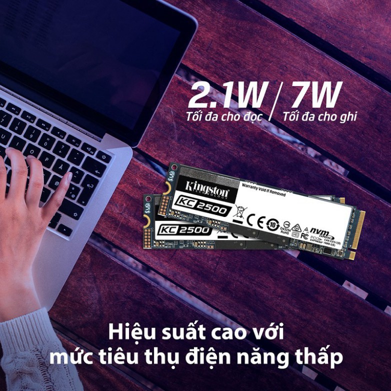 Ổ cứng SSD Kingston 1000Gb KC2500 M.2 2280 NVME Đọc 3500MB/s - Ghi 2500MB/s - SKC2500M8/1000G..Ổ SSD PCIe NVMe KC2500 của Kingston mang lại hiệu năng mạnh mẽ vì sử dụng bộ điều khiển Gen 3.0 x 4 mới nhất và NAND TLC 3D 96 lớp. Với tốc độ đọc/ghi lên đến 3.500/2.900MB/giây1, KC2500 cho độ bền xuất sắc và nâng cao hiệu suất công việc trên máy bàn, máy trạm và các hệ thống điện toán hiệu năng cao (HPC). Thiết kế M.2 nhỏ gọn linh hoạt hơn, tăng dung lượng lưu trữ và tiết kiệm không gian.
