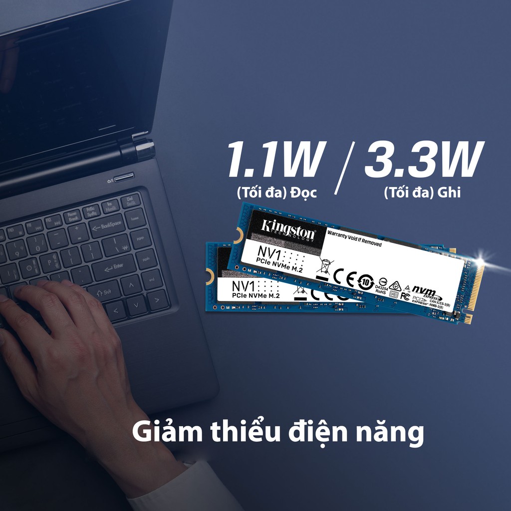 Ổ SSD NV1 NVMe™ PCIe của Kingston là giải pháp lưu trữ có dung lượng lớn, với tốc độ đọc/ghi1 lên tới 2.100/1.700MB/giây, nhanh gấp 3-4 lần ổ SSD SATA và nhanh gấp 35 lần so với một ổ cứng truyền thống. Ổ NV1 tiêu tốn ít năng lượng hơn, tỏa ra nhiệt thấp hơn và có thời gian tải nhanh hơn. Nhờ hiệu năng hữu ích cùng thiết kế một mặt M.2 2280 (22x80mm), ổ NV1 trở thành phụ kiện lý tưởng cho các mẫu máy tính xách tay và hệ thống có kích thước mỏng với dung lượng hạn chế