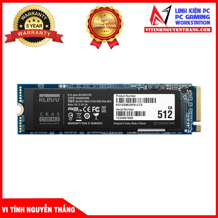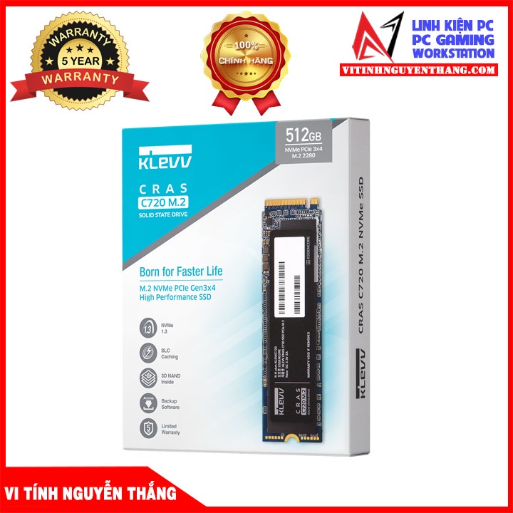Máy tính & Laptop > Thiết Bị Lưu Trữ > Ổ Cứng SSD || Ổ cứng SSD KLEVV CRAS C720 512GB M2 NVME GEN3X4 new chính hãngCòn hàng