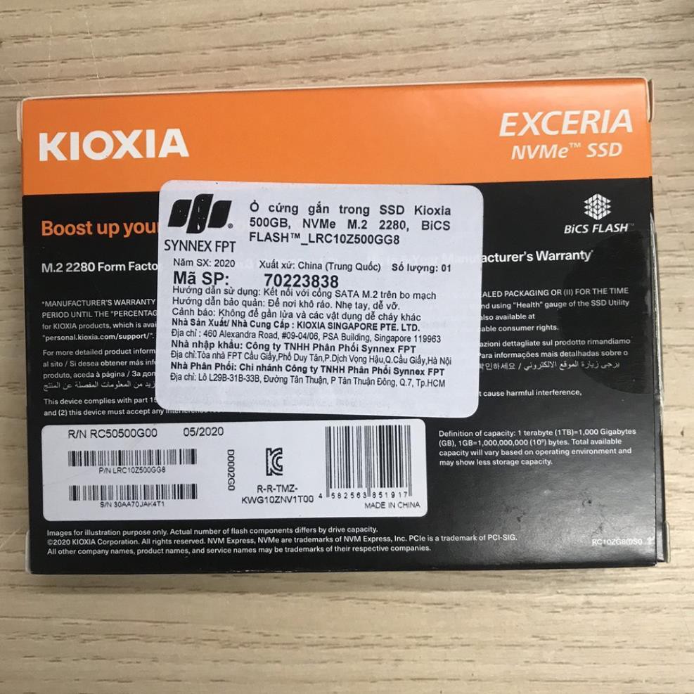 Ổ cứng gắn trong SSD Kioxia (Toshiba) Exceria NVMe 250GB, 500GB, NVMe M.2 2280 - Chính Hãng FPTKIOXIA là một thương hiệu mới được đổi tên từ tập đoàn Toshiba Memory Holdings vào tháng 10.2019. Mặc dù có tên gọi khác, nhưng KIOXIA vẫn là công ty lưu trữ hàng đầu với công nghệ BiCS FLASH 3D, tập trung vào đổi mới, chất lượng và độ tin cậy. Công nghệ này là một thành phần quan trọng trong hầu hết tất cả các thiết bị điện tử, nơi dữ liệu cần được lưu trữ. KIOXIA hiện đang là nhà sản xuất nand Flash đứng thứ hai thế giới chỉ sau Samsung Electronics của Hàn Quốc.