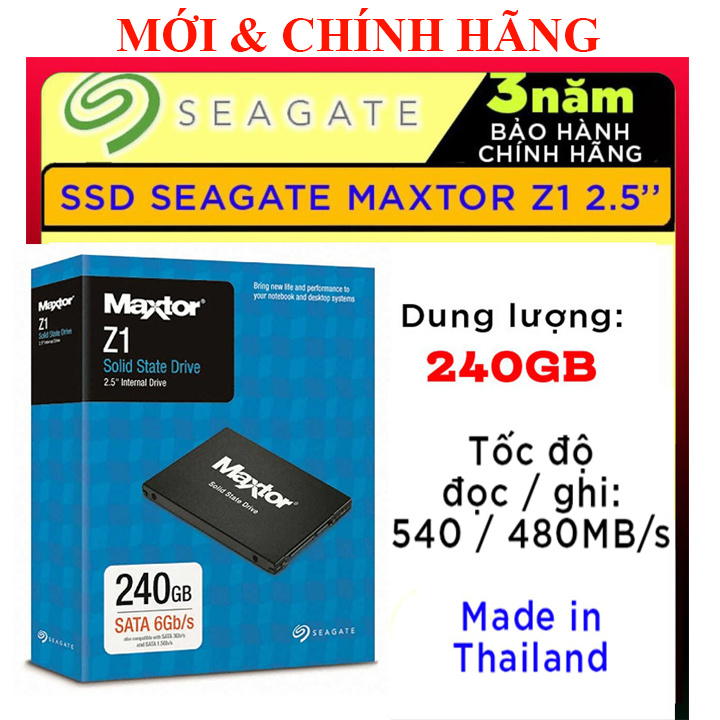Ổ cứng SSD Seagate Maxtor Z1 240GB 2.5" SATA được thiết kế và sản xuất bởi hãng Seagate (tên đầy đủ là Seagate Technology) là 1 trong những công ty chuyên về nghiên cứu, phát triển và sản xuất kho lưu trữ dự liệu lớn trên thế giới. Seagate được thành lập vào tháng 1 năm 1979 với tên ban đầu là Shugart Technology, công ty được hợp nhất tại Ai-len và có các văn phòng điều hành chính được đặt tại California, Mỹ từ năm 2010. thiết kế chuyên dùng cho việc nâng cấp khả năng lưu trữ dữ cho thiết bị laptop, PC của người dùng với dung lượng lên đến 240GB vừa đủ dùng giúp cho người dùng có thể thoải mái lưu trữ với tốc độ nhanh chóng, vượt trội.