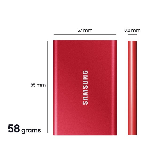 Kích thước bỏ túi và mỏng, thân máy nhẹ là tiêu chuẩn trên T7. Có kích thước gần bằng một chiếc thẻ tín dụng và nặng 58 gram, kết cấu nhôm nguyên khối chắc chắn nằm gọn trong lòng bàn tay của bạn.