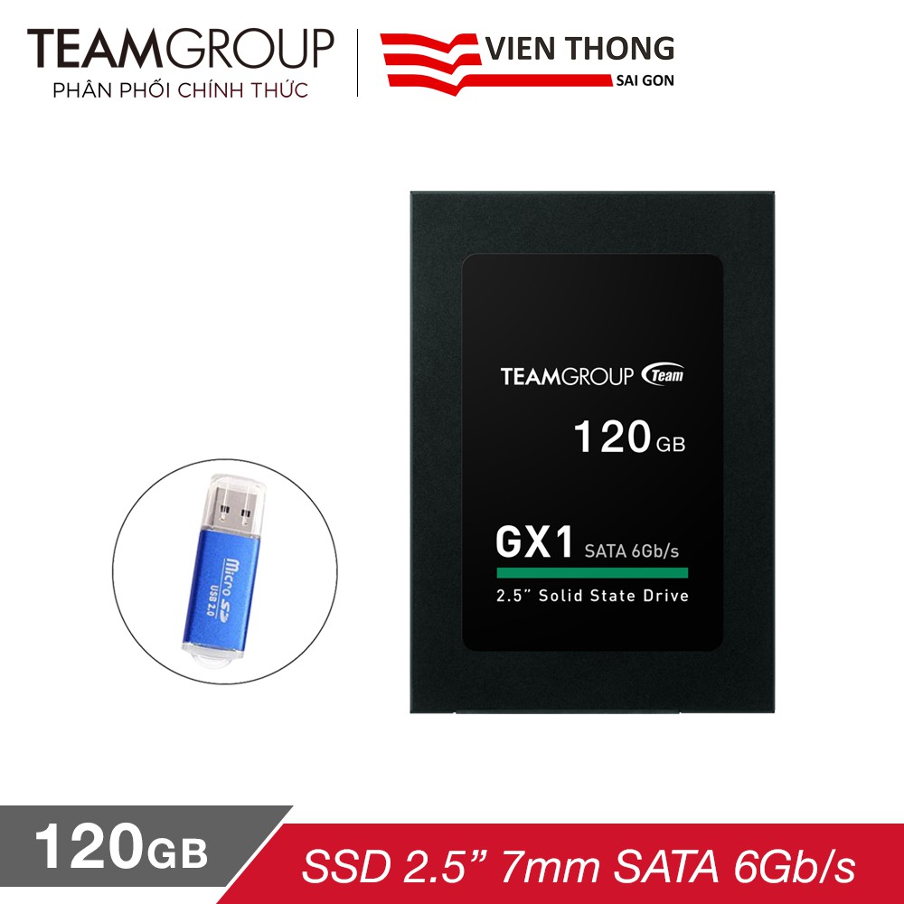 Ổ cứng SSD Team Group GX1 120GB Sata III 7mm 2.5" (Bảo hành 3 năm đổi mới) tặng đầu đọc thẻ - Hãng phân phối chính thức