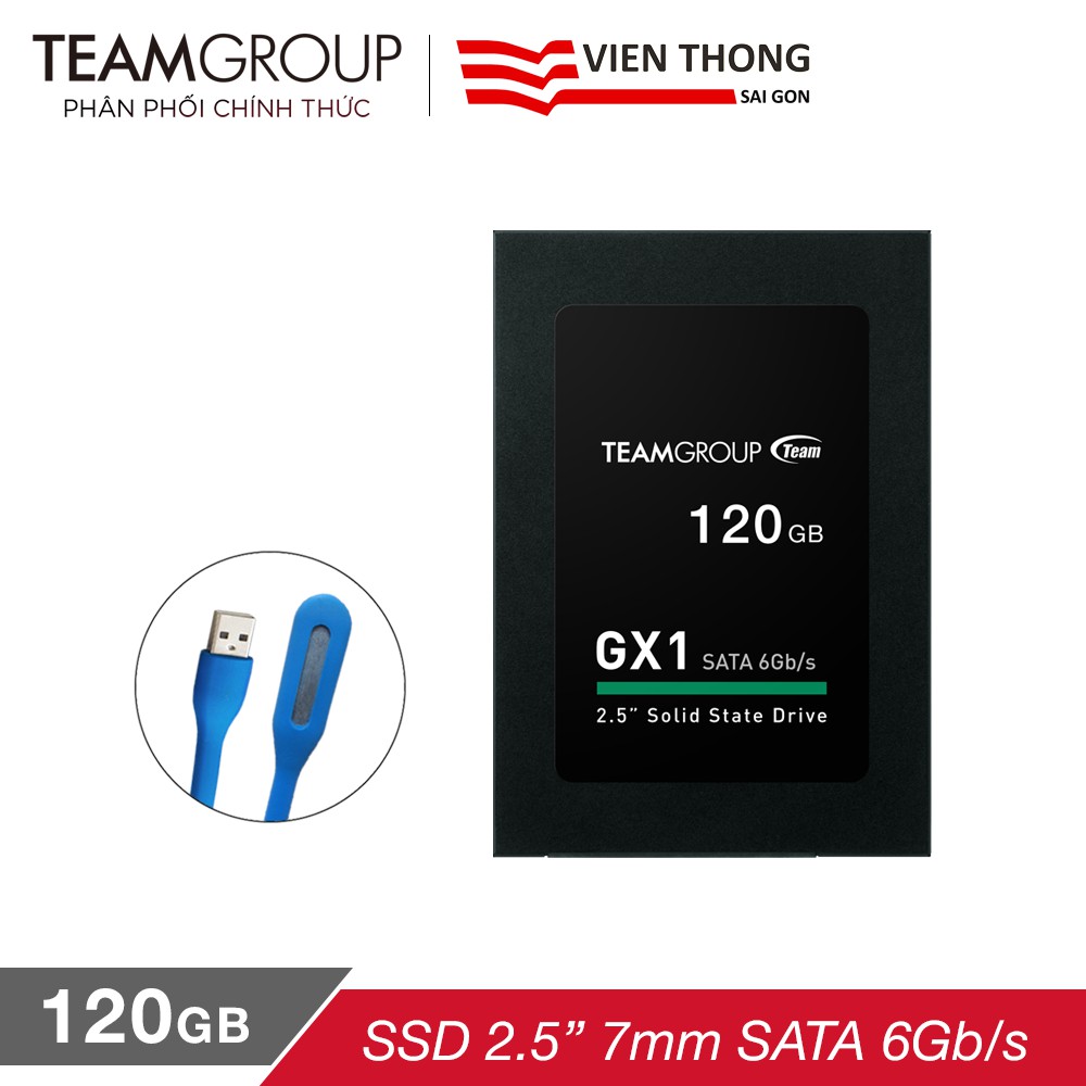 Ổ cứng SSD Team Group GX1 120GB Sata III 7mm 2.5" (Bảo hành 3 năm đổi mới) tặng đèn LED - Hãng phân phối chính thức