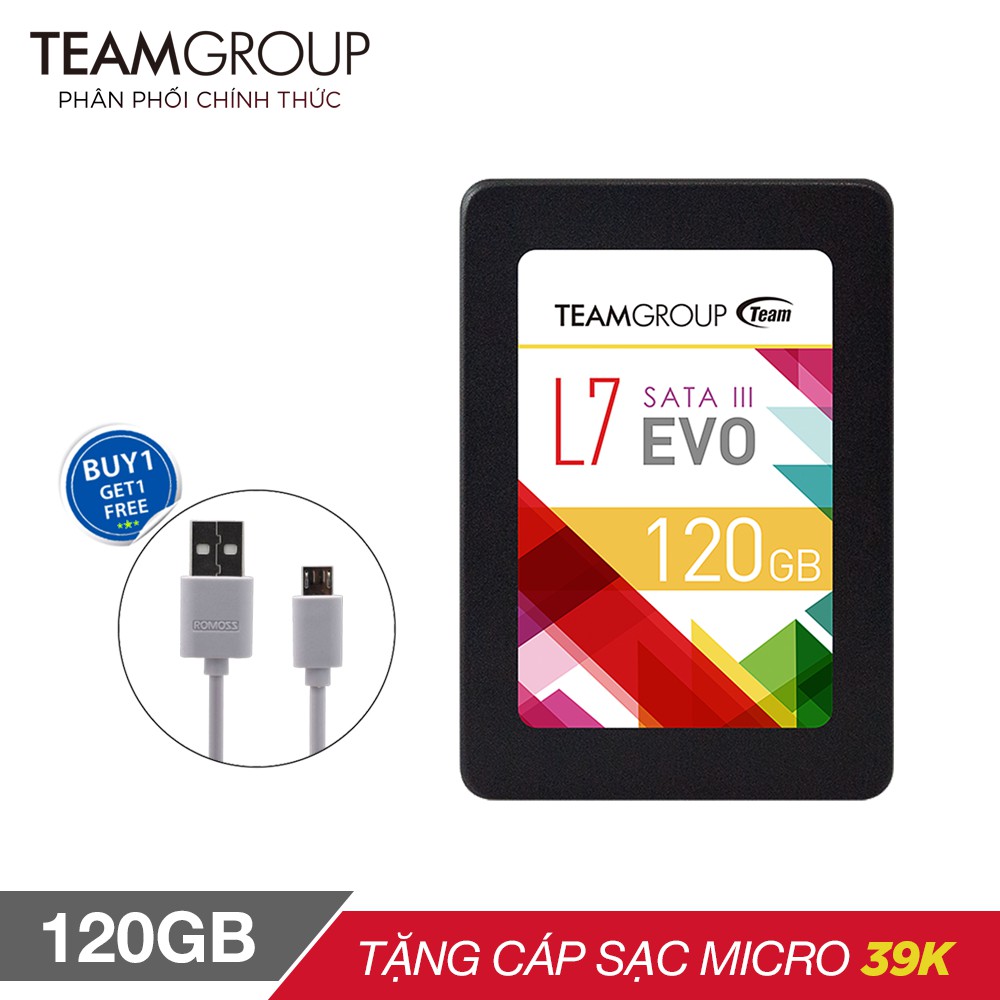 Ổ cứng SSD Team Group L7 EVO 120GB Sata III 7mm tặng Cáp micro USB tròn Romoss