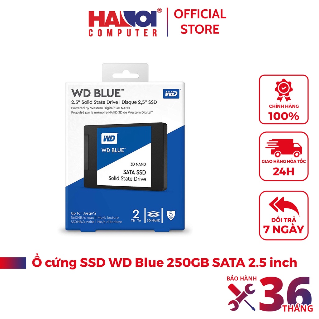 Máy tính & Laptop > Thiết Bị Lưu Trữ > Ổ Cứng SSD || Ổ cứng SSD WD Blue 250GB SATA 2.5 inch (Đọc 550MB/s - Ghi 525MB/s) - (WDS250G2B0A)Còn hàng
