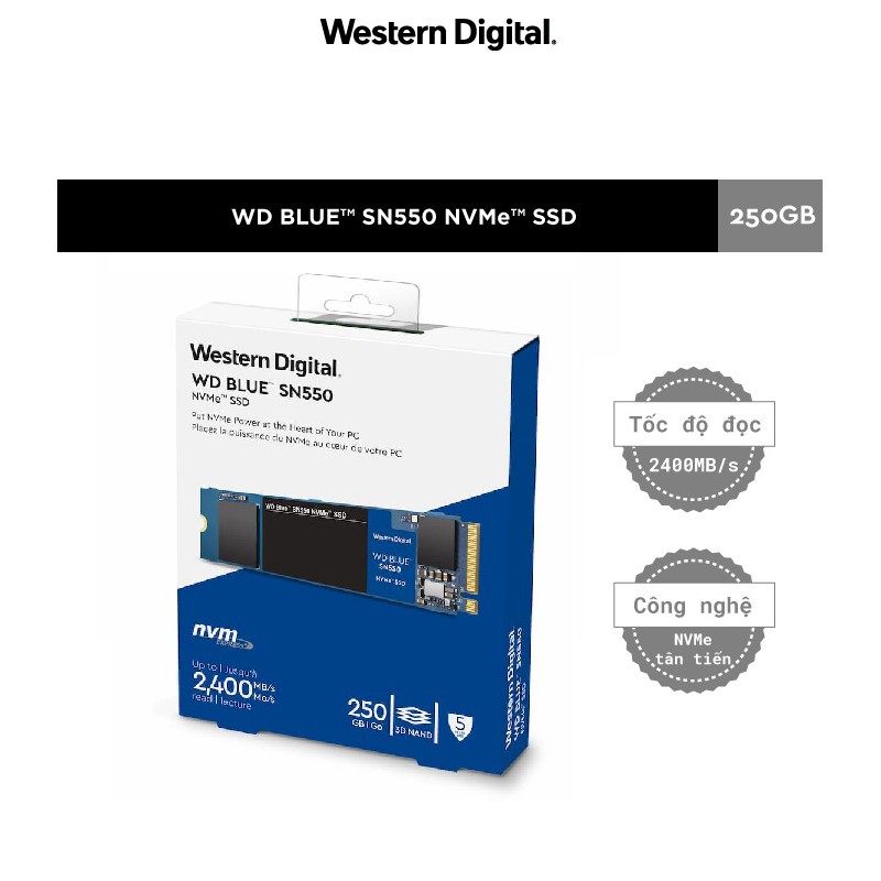 Ổ cứng SSD WD Blue SN550 250GB M.2 2280 NVMe Gen3 x4 WDS250G2B0C