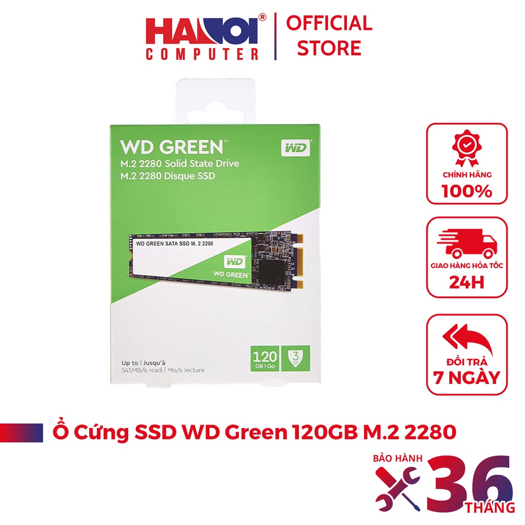 Máy tính & Laptop > Thiết Bị Lưu Trữ > Ổ Cứng SSD || Ổ cứng SSD WD Green 120GB M.2 2280 (Đọc 545MB/s - Ghi 430MB/s) - (WDS120G2G0B)Còn hàng
