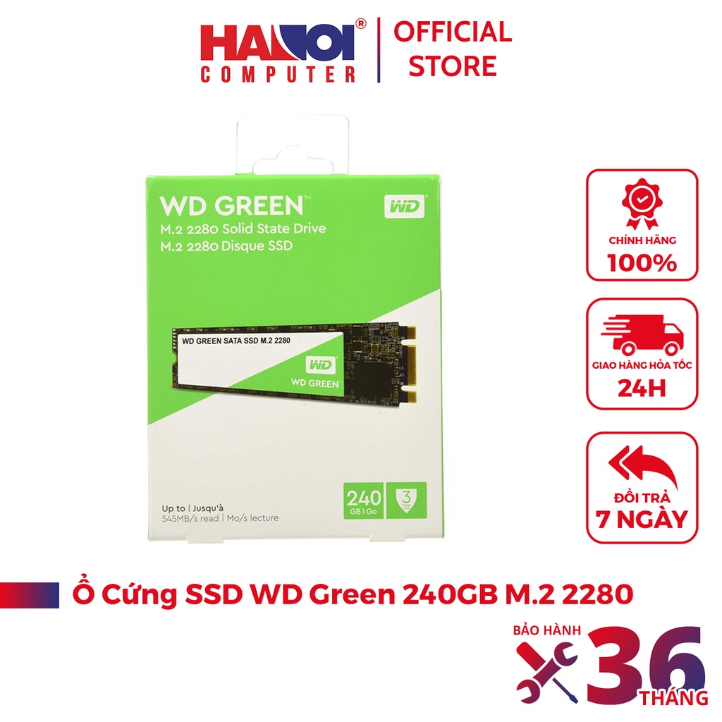 Máy tính & Laptop > Thiết Bị Lưu Trữ > Ổ Cứng SSD || Ổ cứng SSD WD Green 240GB M.2 2280 (Đọc 545MB/s - Ghi 430MB/s) - (WDS240G2G0B)Còn hàng