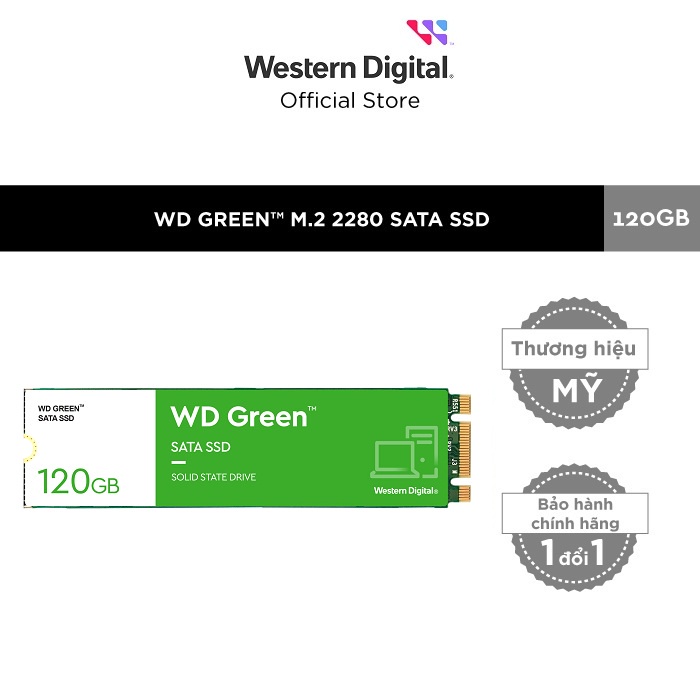 Ổ cứng SSD Western Digital green M.2 2280 Sata III 120GB WDS120G3G0B - New version 2022
