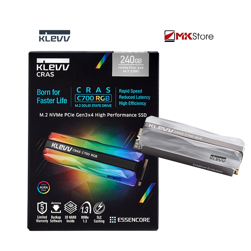 * Thông tin sản phẩm:- Tên sản phẩm: Ổ cứng thể rắn SSD Klevv SSD CRAS C700 RGB M2 NVME Gen3x4