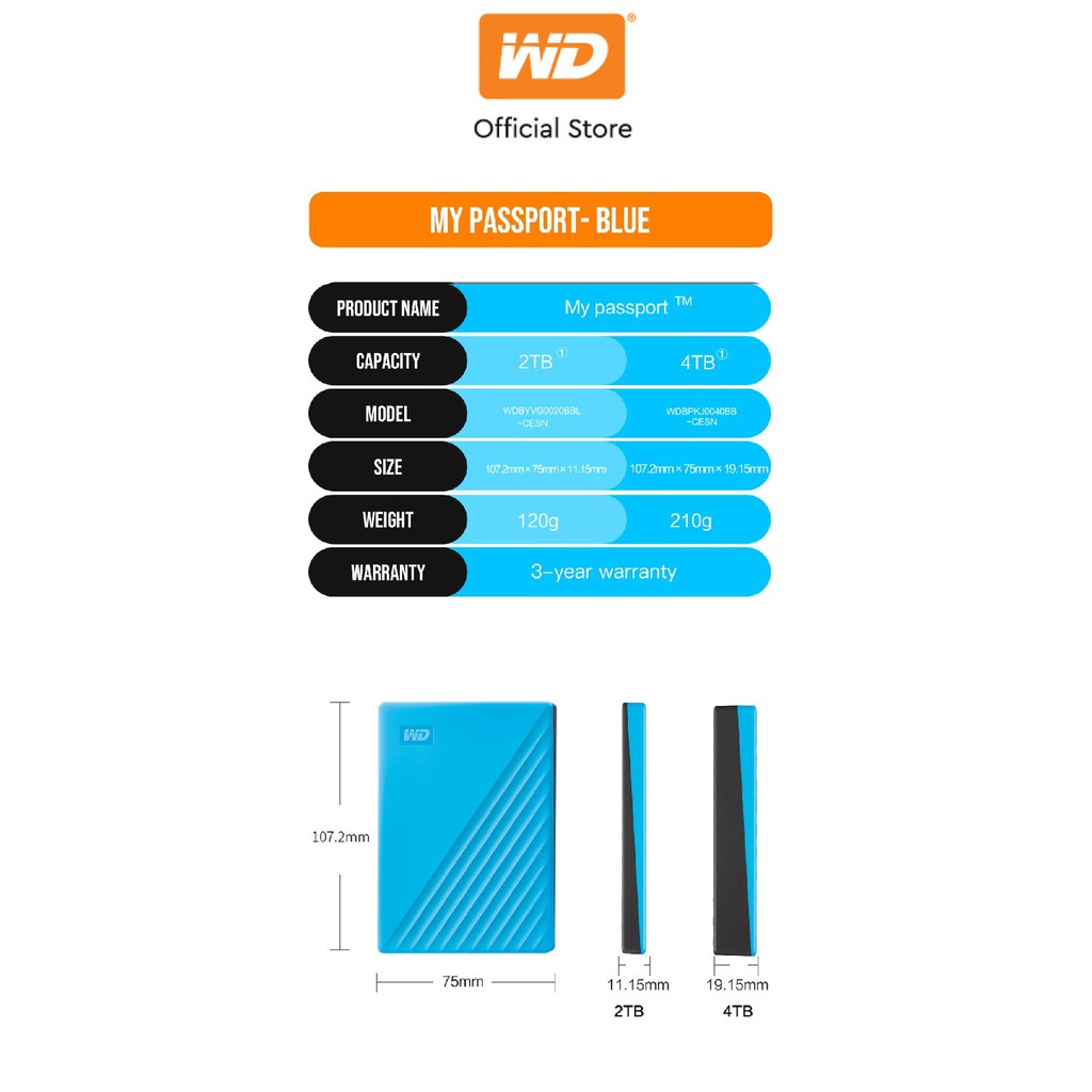 #WD #ổcứng #gắnngoài #4TB #Xanh #mypassport #2.5inch