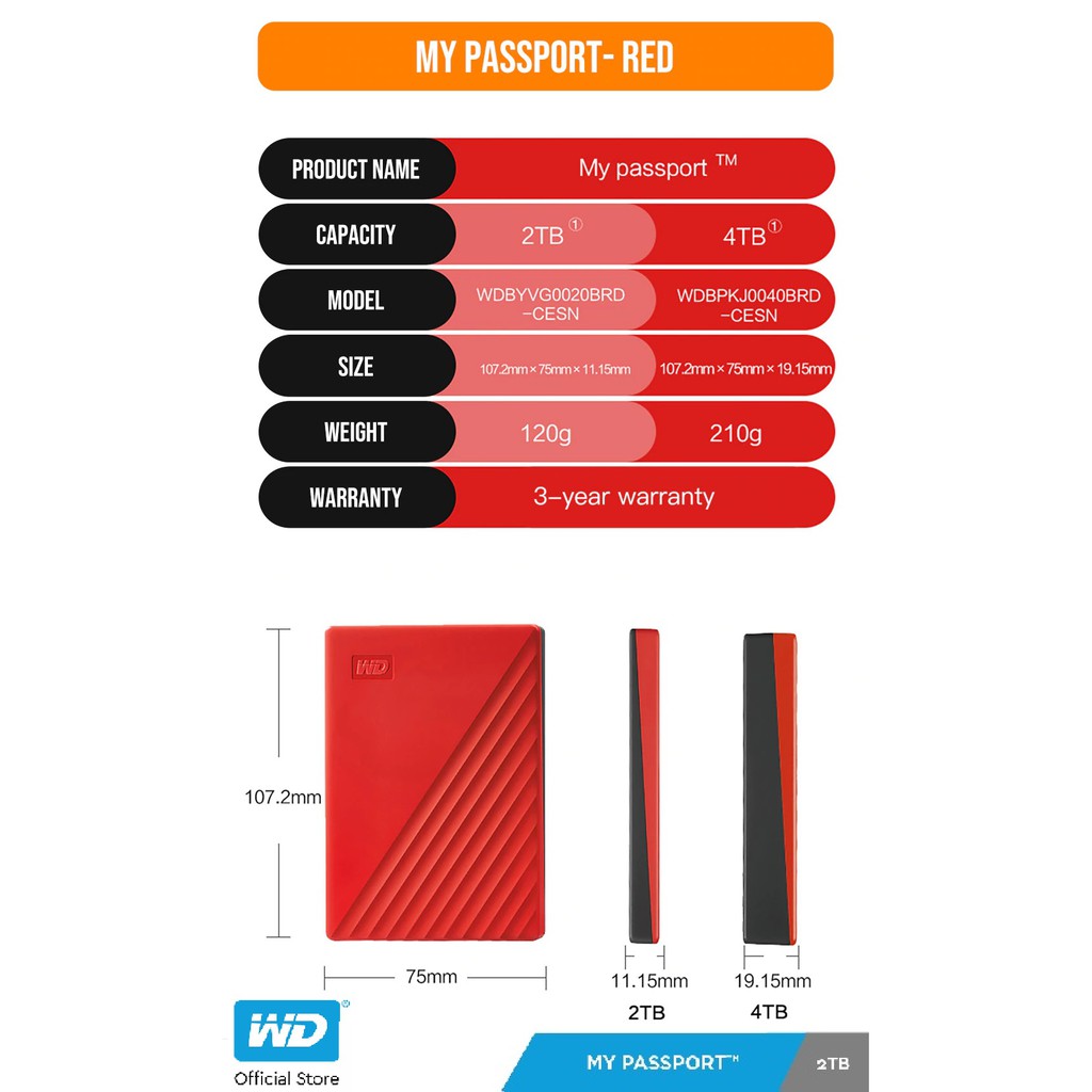 Giới thiệu Ổ cứng WD My Passport 2.5 INCH( USB 3.2) 2TB Portable( Đỏ)-