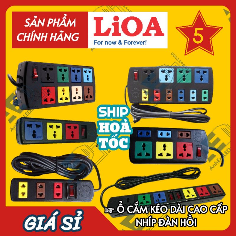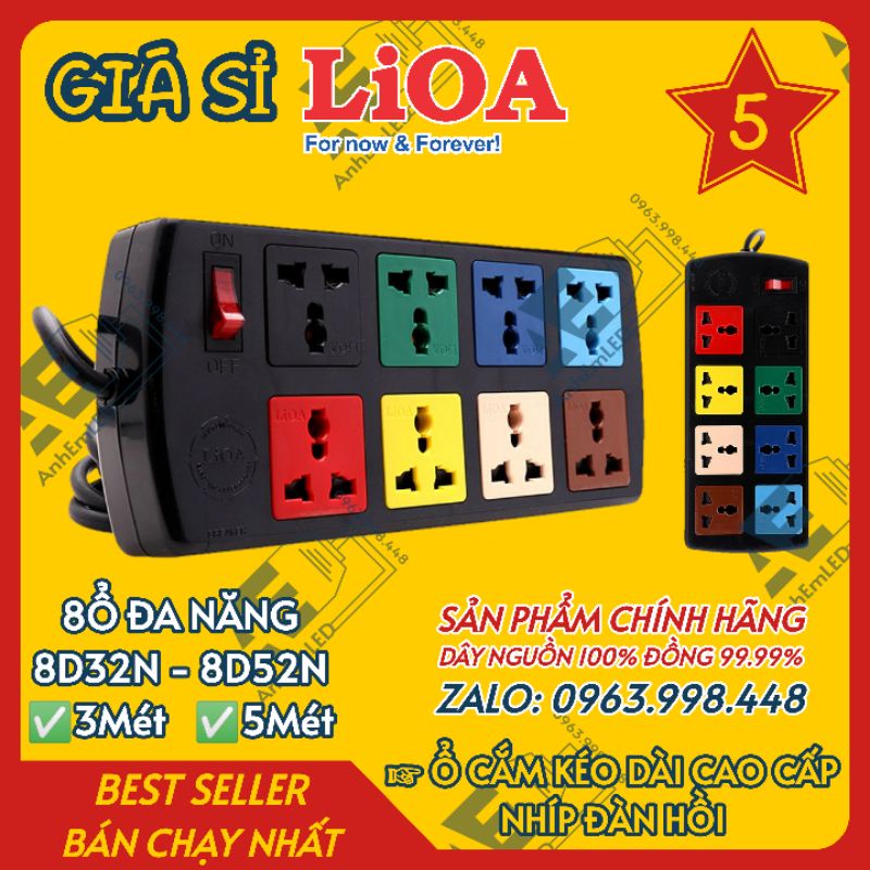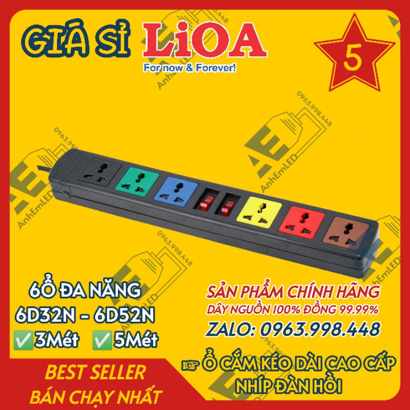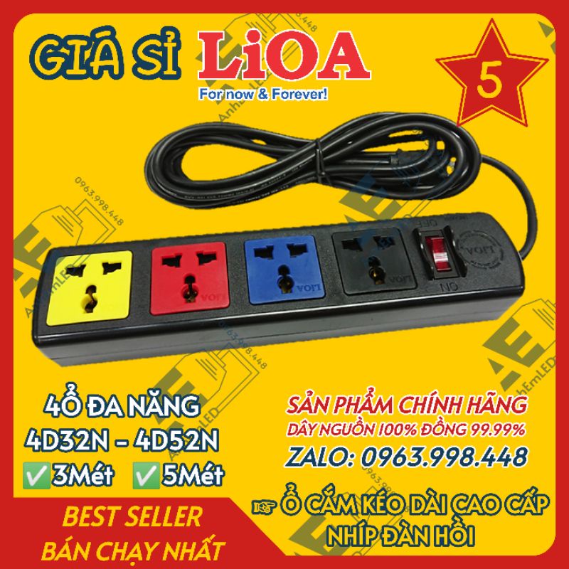 Giới thiệu Ổ DÂY LIOA CHÍNH HÃNG 3 lỗ 4 lỗ 6 lỗ 8 lỗ 10 lỗ có công tắc 3m 5m 4D6S32 4D6S52 8D32N 8D52N 3D3S32 3D3S52 6DOF32N 6D32N