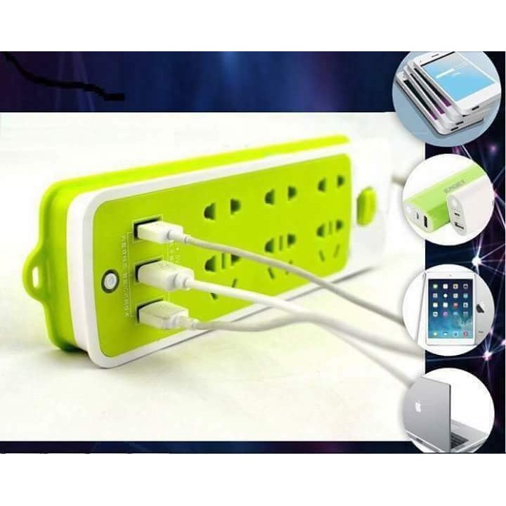 Thiết Bị Điện Gia Dụng > Mạch điện & Phụ tùng > Ổ cắm điện & Dây nối || Ổ điện đa năng thông minh chống giật an toàn 9 ổ kèm 3 cổng sạc usb tiện dụng màu xanhCòn hàng