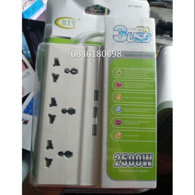 Thiết Bị Điện Gia Dụng > Mạch điện & Phụ tùng > Ổ cắm điện & Dây nối || Ổ điện 3 chân 3 ổ có 3 ổ cắm usbCòn hàng