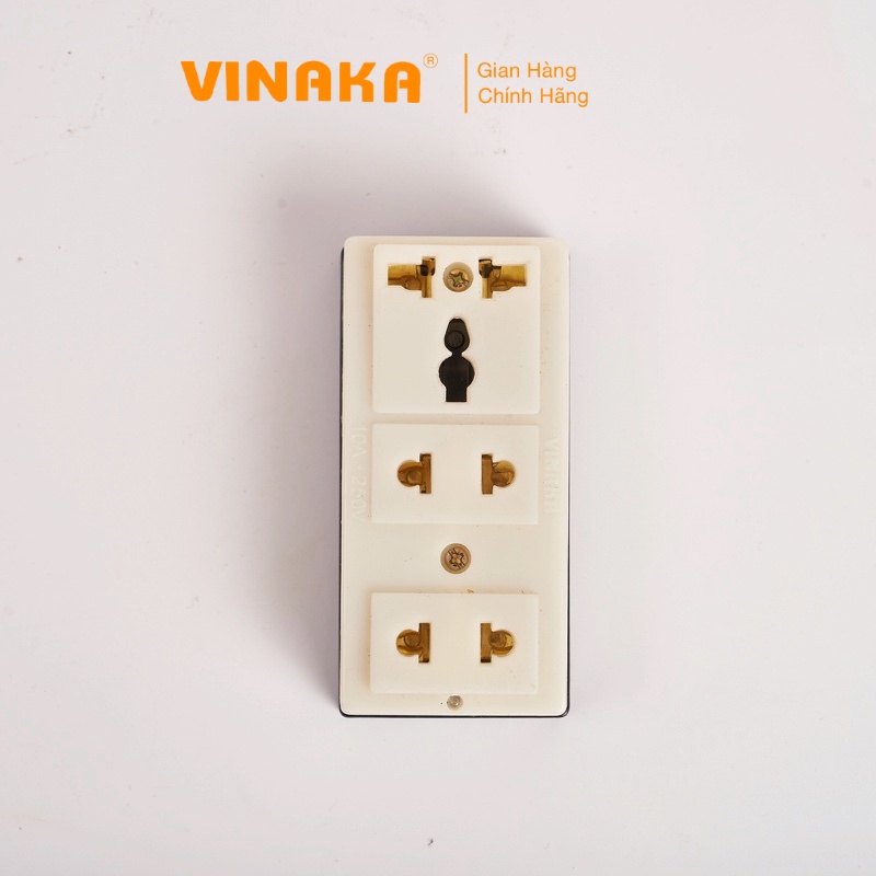 - Ổ điện 3 lỗ Vinaka được thiết kế sử dụng cho 3 thiết bị theo phong cách truyền thống, gần gũi và thân thiện với người tiêu dùng, kết cấu bền chắc, dễ dàng lắp đặt sử dụng.