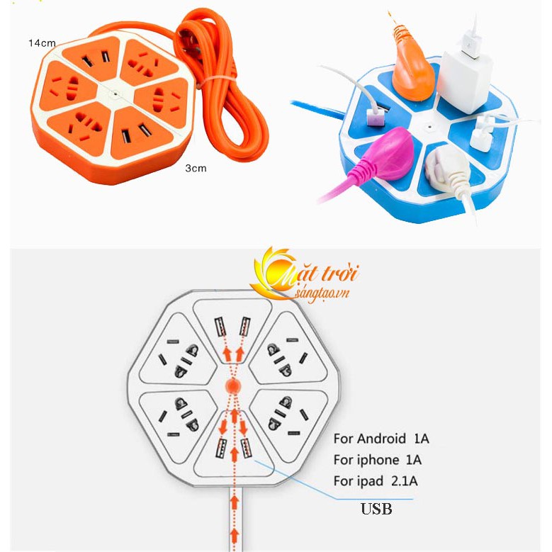 ❶ Thiết kế hình lát cam độc đáo sẽ giúp ổ cắm điện trở nên 1 vật dụng trang trí thật đẹp mắt cho ngôi nhà của bạn. Với 4 Outlets 2-3 chấu và cùng 2 Cổng Usb để sạc thiết bị di động trực tiếp vào thật tiện lợi.