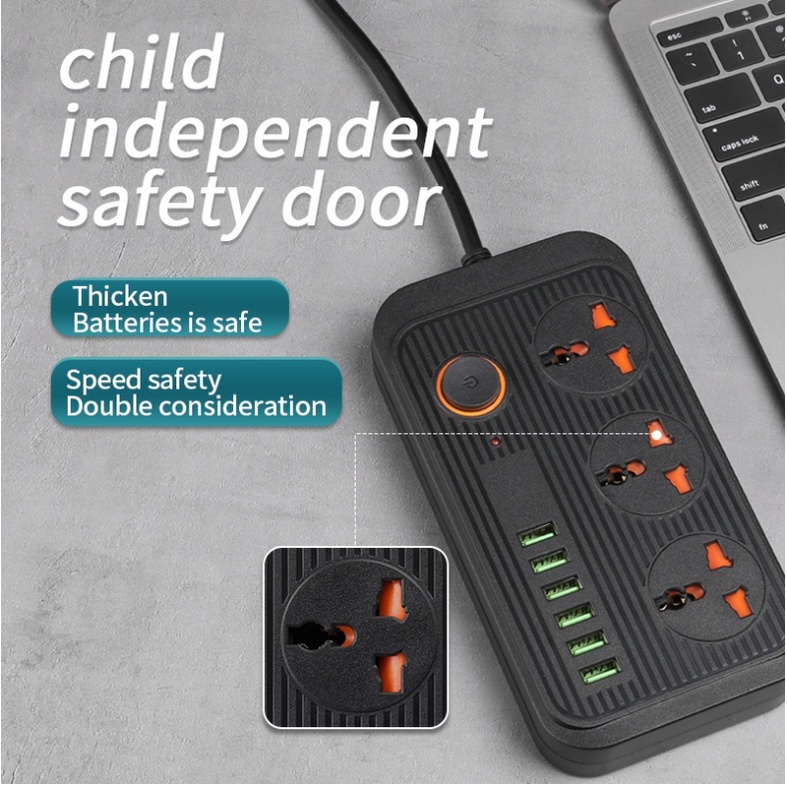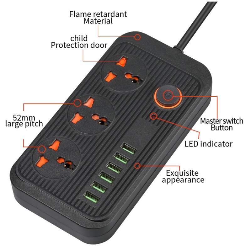 Thiết Bị Điện Gia Dụng > Mạch điện & Phụ tùng > Ổ cắm điện & Dây nối || Ổ Điện Chống Giật A09 Đa Năng Thông Minh, 3 Ổ Cắm Tích Hợp 6 Cổng USB Sạc Nhanh 3.1A - Chống Cháy Nổ - Bảo Hành 12 ThángCòn hàng