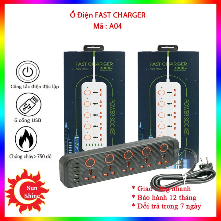 Ổ điện MÃ :A... - ổ cắm điện đa năng chống giật -ổ cắm điện thông minh kèm cổng sạc USB ( phích cắm, 4USB)-----------------------------------------