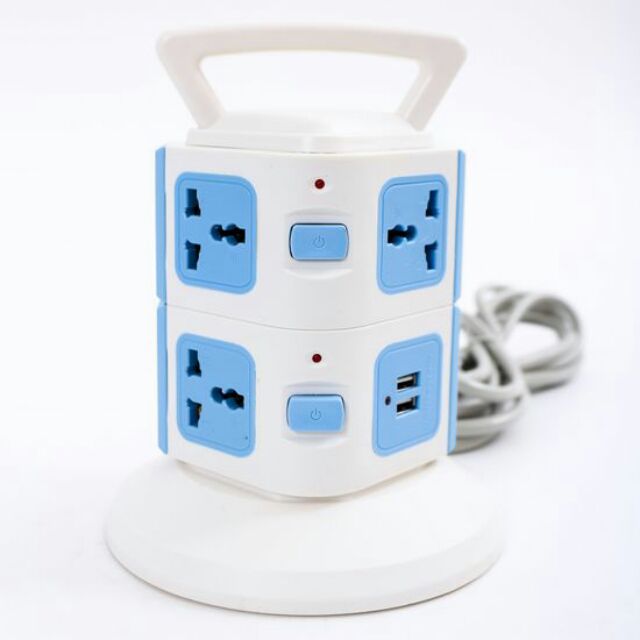 Đặc biệt mỗi tầng còn được trang bị thêm nút tắt nguồn và có đèn báo khi có điện áp vào Trên đầu ổ cắm còn được thiết kế 1 tay cầm bạn không cần phải cúi xuống để cầm mà chỉ cần xách đi mọi chỗ rất đơn giản Điểm đặc biệt của ổ cắm là được trang bị thêm 2 cổng USB giúp bạn có thể sạc những thiết bị sử dụng cổng USB mà không cần đến củ sạc khá là tiện dụng