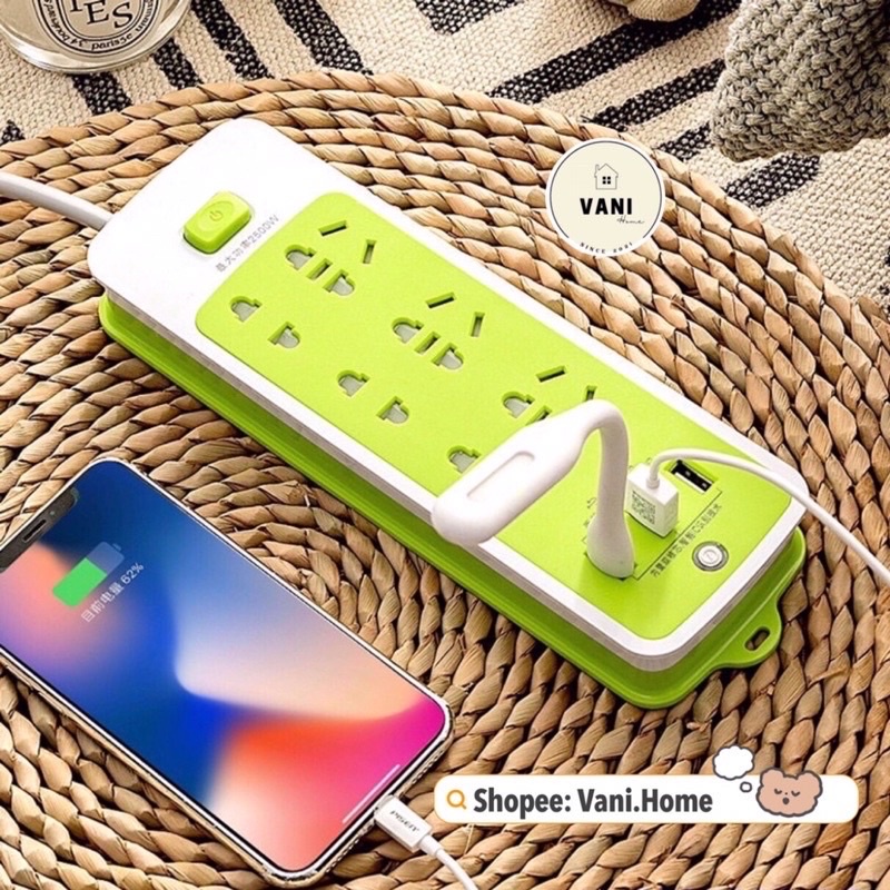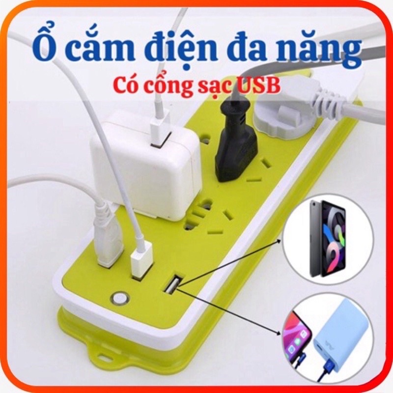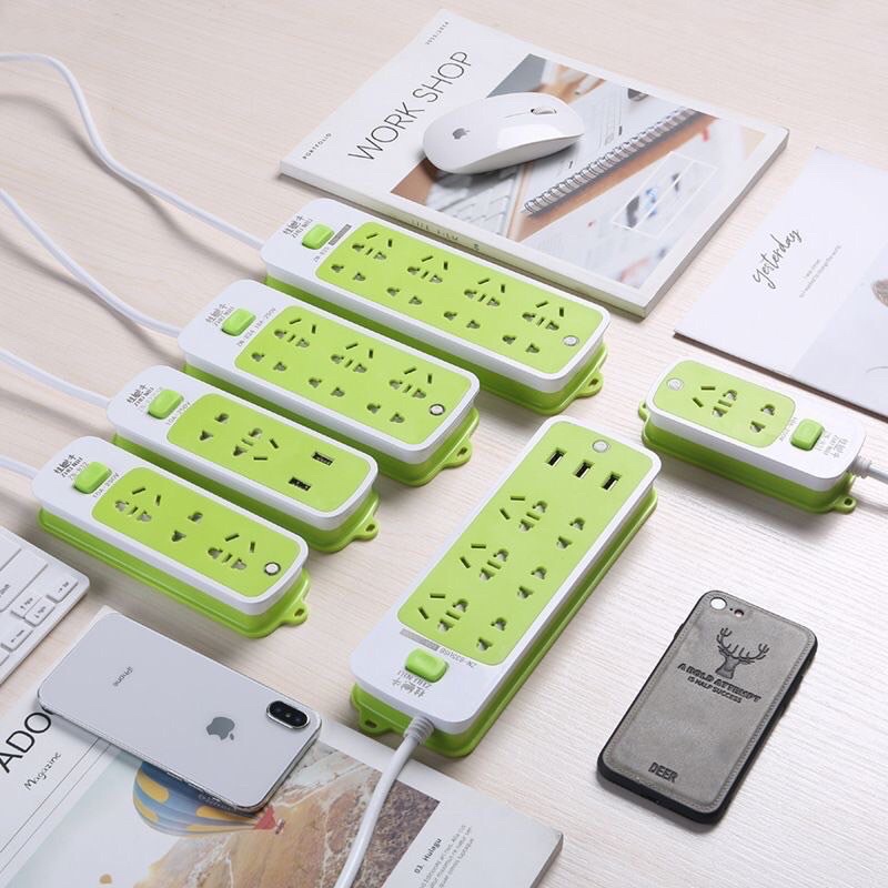 Thiết Bị Điện Gia Dụng > Mạch điện & Phụ tùng > Ổ cắm điện & Dây nối || Ổ điện đa năng 6 ổ cắm & 3 cổng sạc usb - Ổ cắm điện xanh lá có cổng USB cho điện thoại, ipad tiện dụng cho gia đìnhCòn hàng