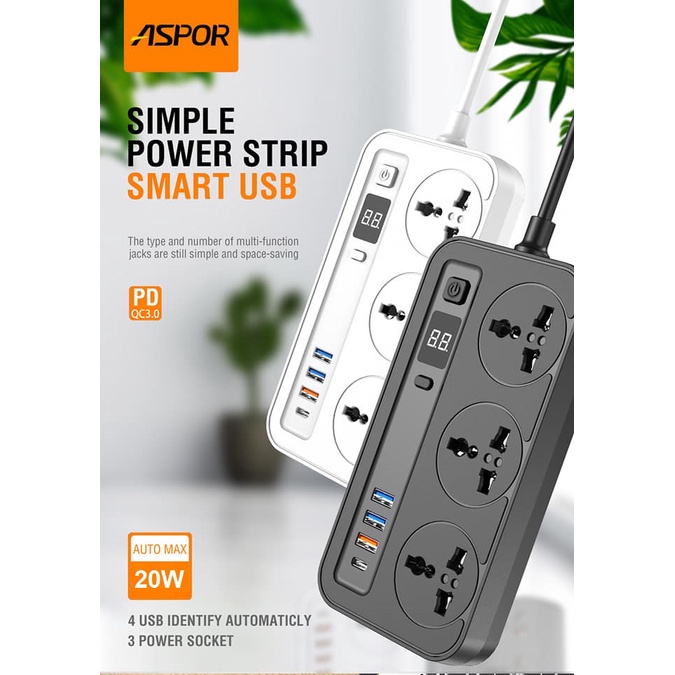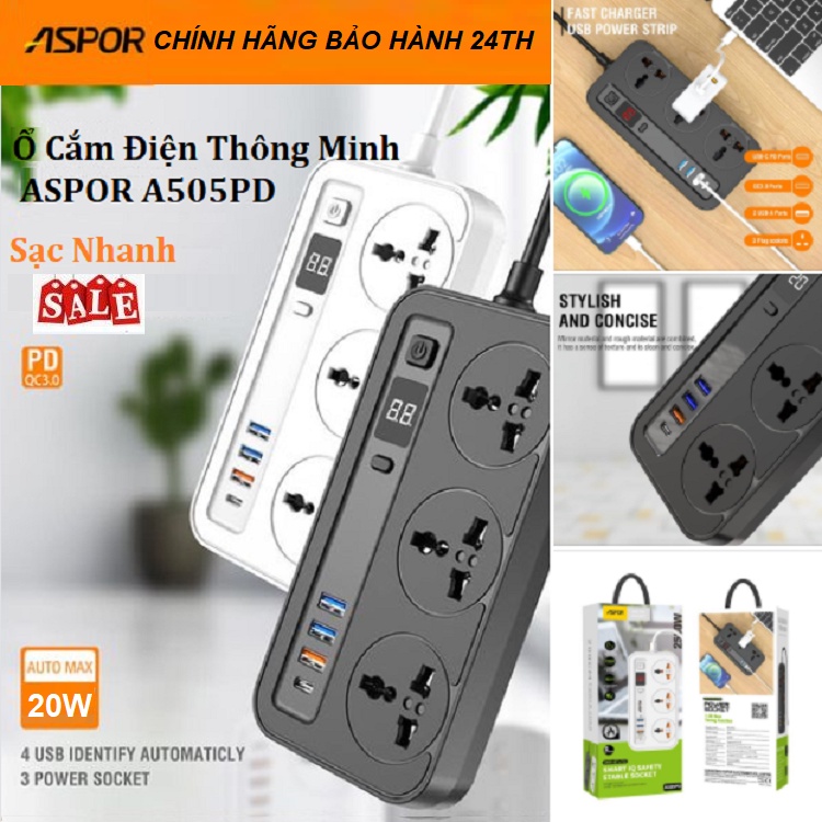 Ổ điện Sạc nhanh chính hãng Aspor A505PD, chip IQ tự động điều chỉnh điện áp vào