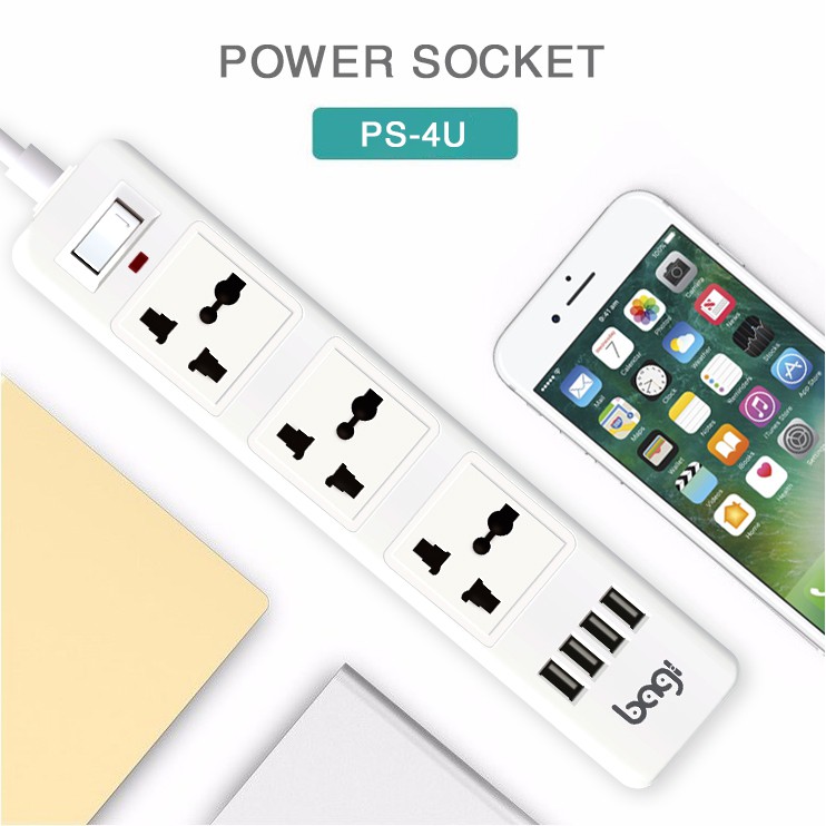 Ổ điện đa năng Bagi kéo dài EP-4D4U 3 ổ điện, 4 cổng USB (5V - 2.1A)