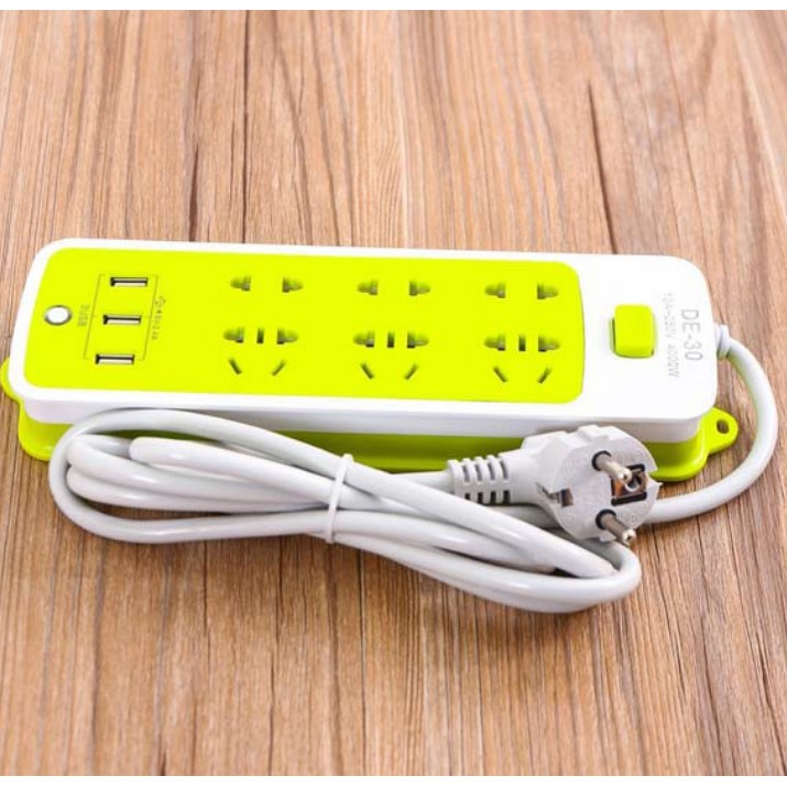 Ổ Điện Đa Năng Chống Giật Thông Minh 6 Lỗ Cắm Điện 3 Cổng Usb Sạc Điện Thoại 5V - 2.4A 12w Có Đèn Báo Điện