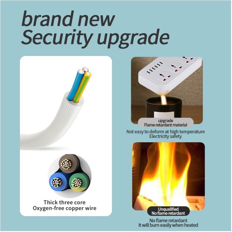 Cửa an toàn trên nhiều ổ cắm, bảo vệ quá tải tiên tiến được tích hợp sẵn có thể cung cấp sự bảo vệ hoàn hảo nhất khỏi quá áp, đột biến, cháy nổ. Với dây nối đất, để bảo vệ trẻ em khỏi những cú sốc điện có thể xảy ra.