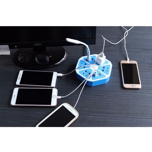 ĐIỂM NỔI BẬT- Ổ cắm điện đa năng trái cam với 5 lỗ cắm 3 chấu và 2 cổng USB cho phép người dùng sạc pin smartphone mà không cần tới củ sạc.