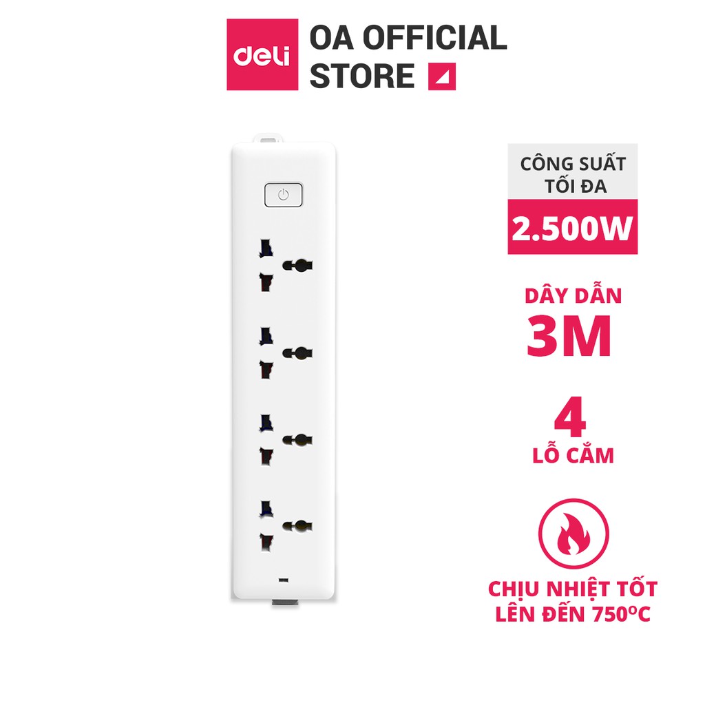 Thiết Bị Điện Gia Dụng > Mạch điện & Phụ tùng > Ổ cắm điện & Dây nối || Ổ Điện Đa Năng Deli Tích Hợp 4 Ổ Cắm Đầu Ba - An Toàn, Tiện Lợi, Chịu Nhiệt Tốt - Dùng Trong Văn Phòng - Dây 3m - E18337Còn hàng