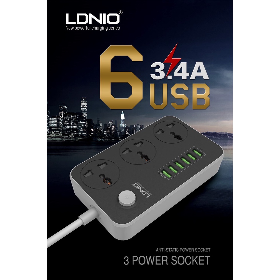 Ổ điện đa năng, Ổ cắm điện thông minh 6 cổng USB an toàn chống giật,chống cháy nổ - LDNIO - Hàng Chính Hãng