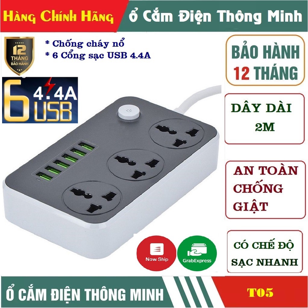 Ổ điện đa năng, Ổ cắm điện thông minh 6 cổng USB sạc nhanh 4.4A an toàn chống giật,chống cháy nổ
