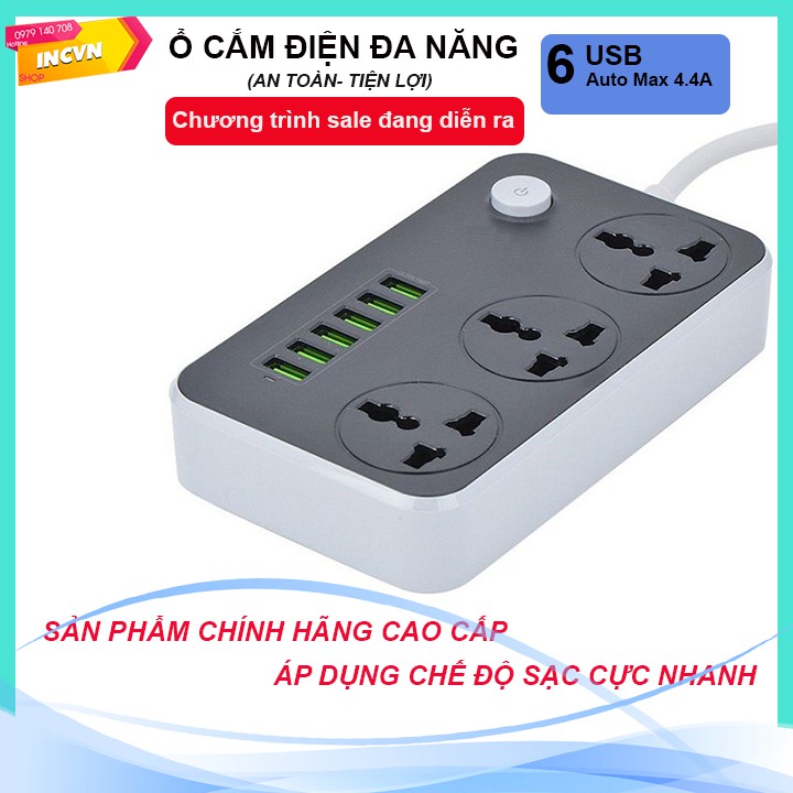 Nhà cửa & Đời sống > Dụng cụ & Thiết bị tiện ích > Dụng cụ > Khác || Ổ điện đa năng, Ổ cắm điện thông minh 6 cổng USB sạc nhanh 4.4A an toàn chống giật,chống cháy nổCòn hàng