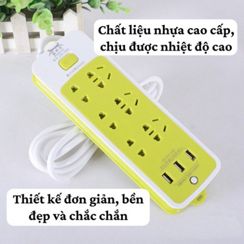 - Ổ cắm điện được thiết kế 6 ổ cắm 3 cổng USB, 6 ổ cắm dành cho các phích cắm từ 2 chấu đến 3 chấu, tròn hay dẹp đều được.